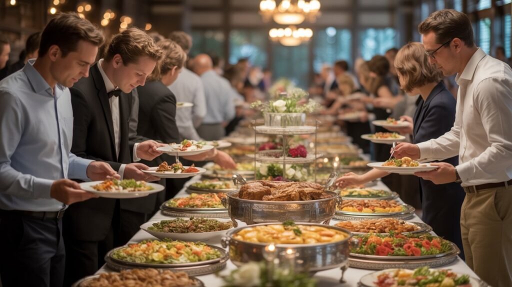Ein Buffet passt zu längeren Veranstaltungen oder Events mit sehr unterschiedlichen Geschmäckern, da es viel Auswahl bietet.