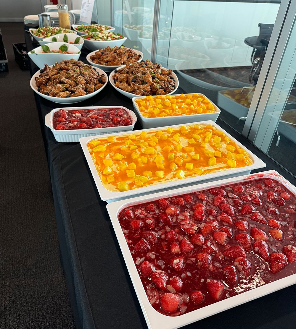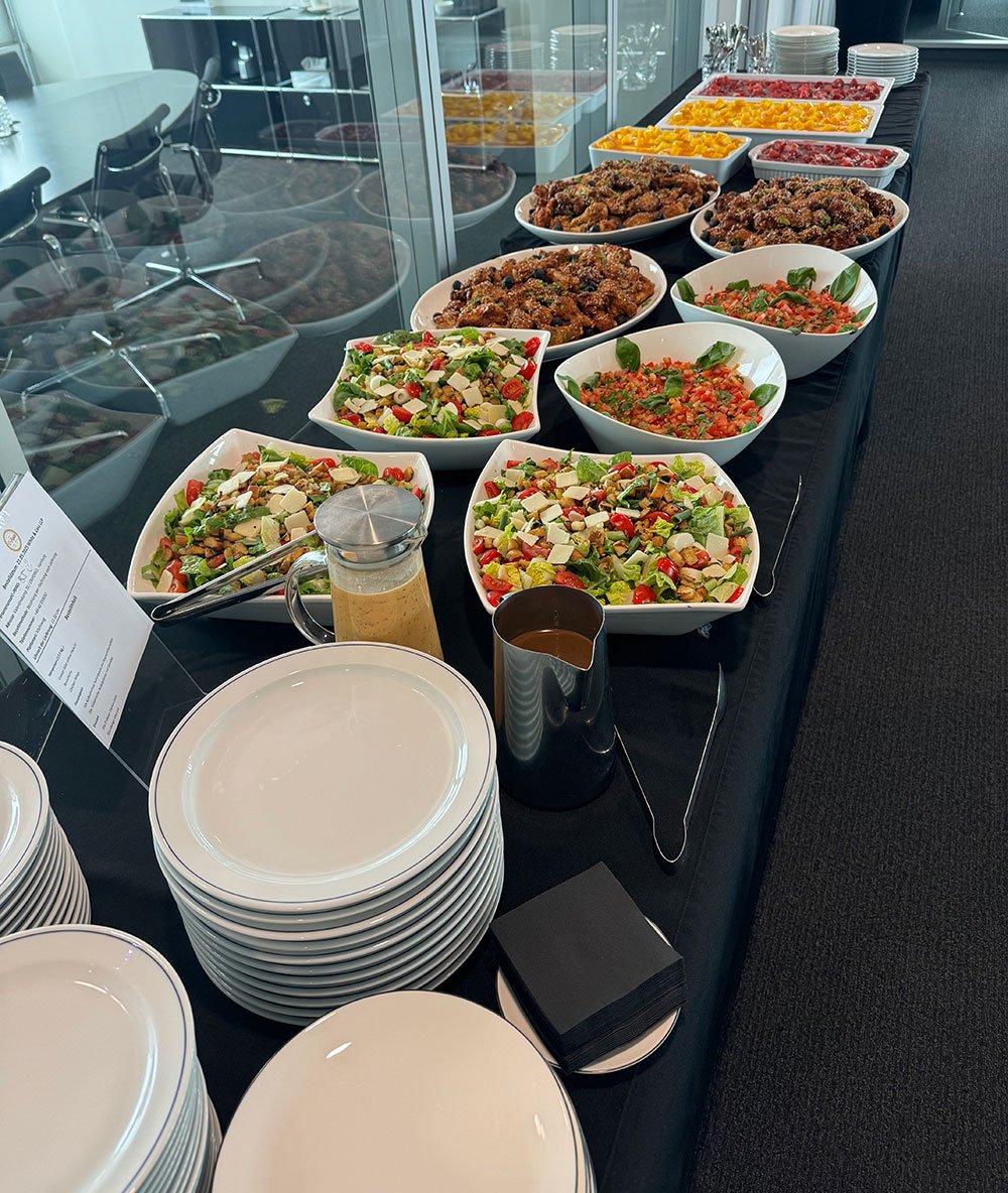 Pünktlich, frisch und temperatursicher geliefert, inkl. Aufbau; Servicepersonal stellen wir gerne auf Wunsch.