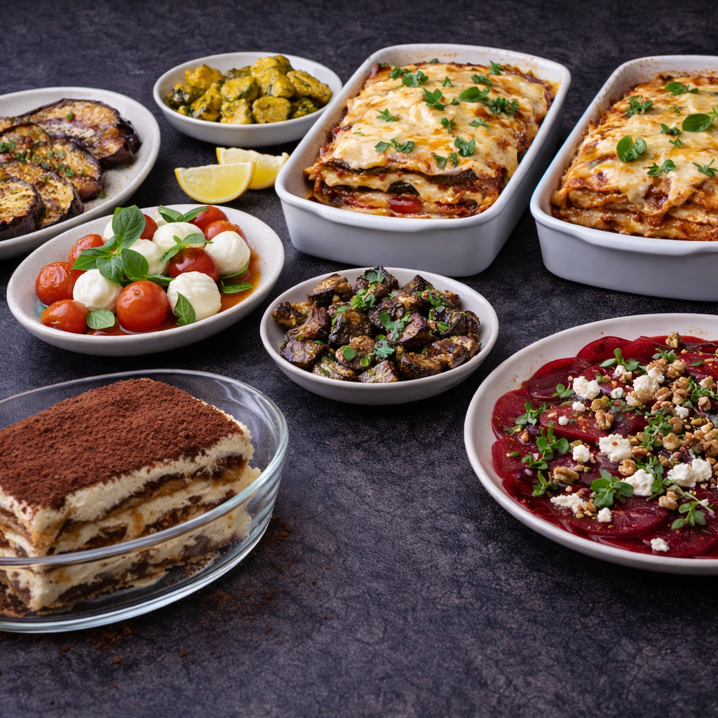 • Verschiedene italienische Antipasti Spieße (Beispielsweise Cury Zucchini, Rosmarinkartoffeln etc.)