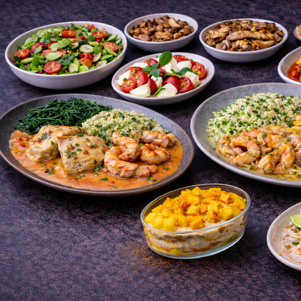 • Currygemüse dazu Kräuterreis (vegetarisch)